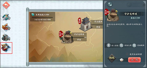 当玩家在编队中不包含好友支援侠客的情况下,成功三星通关时,就会解锁该关卡的扫荡(除血战外)。扫荡需要消耗扫荡令,会直接进行关卡结算,获得资源。