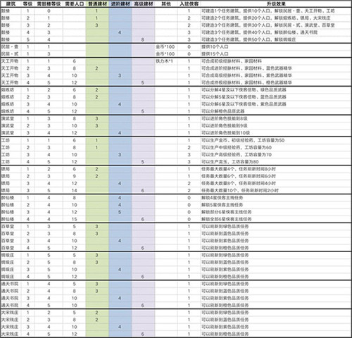 4、将鼓楼升到3级,建造白虎镖局、演武堂、其他任务建筑和第四个工坊,期间有能力可以将工坊等级尽量提高。