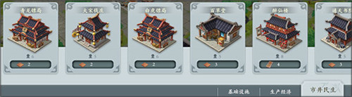 5、此时家园内功能性建筑和生产建筑基本都全了,剩下的在优先升级工坊、镖局的同时,可以升级任务建筑,剩下的功能建筑根据个人需求进行升级。