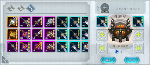 熔炼坊可以分解用不到的侠客信物、武器和材料等。
