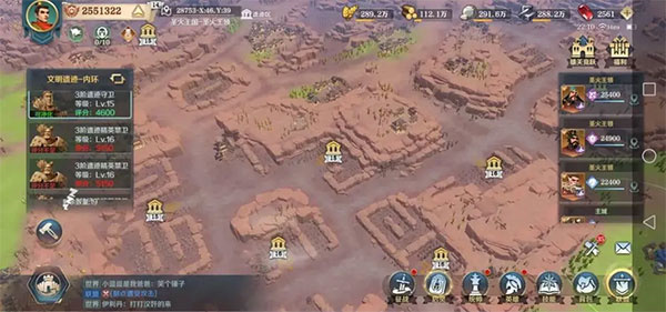 在队伍清理黑鸦叛军时,我们可以同时点开建筑列表,根据主城升级提示,迅速布置建筑,完善内政的发展。