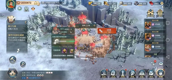 这样加上文明主题英雄,将可以组成一支队伍,然后迅速将他们投入到附近地块清理黑鸦叛军,获取经验升级,消耗完他们全部的体力。