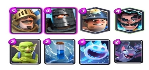 这套卡组的进攻核心是皇家巨人,防守主力为超级骑士,用于辅助偷袭的是飞桶,剩下的则属于辅助卡牌。常见的辅助卡牌有王子、公主以及骷髅海,其他的是远程输出和小费防守卡牌。总体而言,不管是进攻还是防守,这套卡牌都表现出色。而且对于低阶玩家来说,超级骑士一旦等级提升,简直就是噩梦般的存在,仅仅落地的那一下攻击,就能大部分卡牌,更别提皇家巨人横冲直撞的威力了。所以,它非常适合新手用来冲杯。