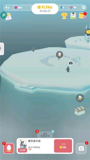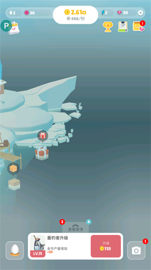 1、游戏中你要慢慢的去解锁一些建筑,聘请一些企鹅来帮助你工作