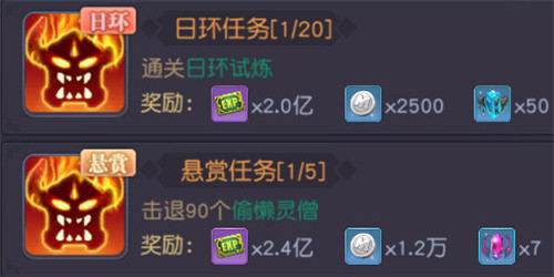 顾名思义,是玩家每天都要进行的高效升级类任务,每天刷新20环,通过达成日环任务所需的击退怪物、通关副本条件后,可获得高额的经验回报,建议每天都做满日环任务。
