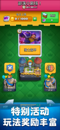 4、收集皇室战争家族成员和您熟悉的《部落冲突》军队,法术和防御建筑等卡牌,打造和升级您的卡组。
