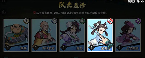 1、踏入局内,少侠需先从五人小队中挑选一名侠客担任“队长”。这位队长侠客将冲锋在前,作为首个登场的侠客,直面第一波敌人的攻势。与此同时,“队长”可享有攻速提升20%、调息速度加快20%,以及能够手动选定攻击目标的队长Buff。建议少侠选择自身阵容里战力最为突出的侠客来担当此任。