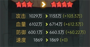 5、当达到一颗皇冠后,每提升一个星级,武将的攻击、防御、血量等属性会增加15%。从一颗皇冠提升至四颗皇冠时,属性提升倍数为1×115%×115%×115% = 1.52倍。此外,拥有四颗皇冠的武将能够觉醒前两个技能,即主动技能与第一个被动技能。