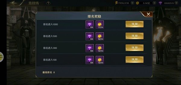 战斗胜利后将获得奖励与积分,当排名处于前1000名时,还可以获得每日额外排名奖励。