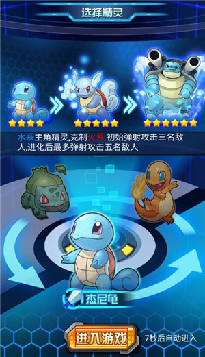 1、下载后打开进入游戏,在水、火、草三系精灵内选择一个开局;