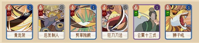 青龙斩2级,或快剑3级哪个满足用哪个,主要靠回牌机制尽量多拿输出卡。