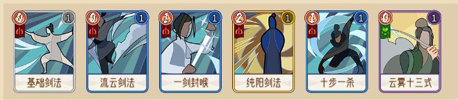 阵容:基础剑法+流云剑法+一剑封喉+纯阳剑法+十步一杀+云雾十三式