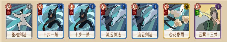 阵容:基础剑法+十步一杀+十步一杀+流云剑法+流云剑法+杏花春雨+云雾十三式