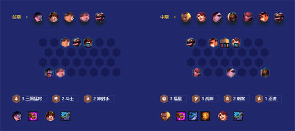 前期不搜牌,3-2选完强化符文大搜,搜出三福星一张德莱厄斯和低费两星即可上七,七人口搜出福星天选和三星德莱厄斯,后续依赖福星给出的经济和英雄复制器进行追三或者说追三星五费。