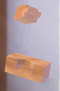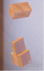 2、旋转【榫结构】,可以看作是中层凸出,只要将前端切割成等腰梯形,就可以让榫卯吻合。