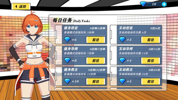 在游戏里,存在好感度系统。玩家能够借助互动训练时长的累积以及赠送礼物的方式,来提升教练的好感度。一旦好感度达到特定程度,教练便会表白,同时解锁更多情侣之间的互动动作。如此设定,使得玩家在进行健身游戏的过程中,还能感受到恋爱带来的甜蜜滋味。