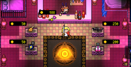 在神秘兔女郎字母姐经营的道具商店里,武器、宝物以及各类道具,都会以随机的方式陈列贩卖。顾客只要使用获得的金币进行消费,就能购买心仪的物品。