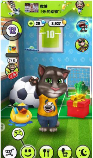 7、与汤姆猫互动:对汤姆猫说话,他仍然会重复你说的话。戳他、抚摸他或是挠他痒痒,看看他如何反应。