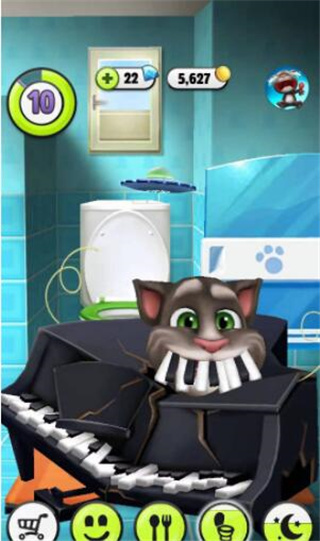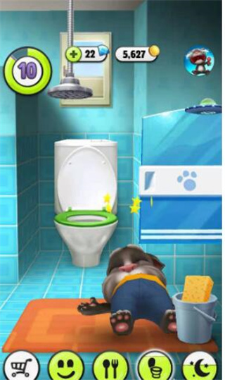 2、天天快乐:当汤姆猫肚子饿时,玩家可以喂它食物;要是它身上脏了,就给它洗个澡;要是它感到疲惫,就让它上床休息;要是它有了便意,要赶紧带它去上厕所!看着它一步步成长为一只开心的大猫!