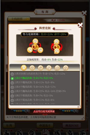 最后要提到的是阵营间的克制关系,这可是影响战局胜负的关键因素之一。具体来说,吴国武将克制魏国武将,魏国武将克制蜀国武将,蜀国武将又克制吴国武将。而群雄武将与魔道武将呈现出互相克制的态势。此外,上阵相同阵营的武将,还能获得对应属性羁绊的加成哦!