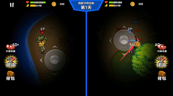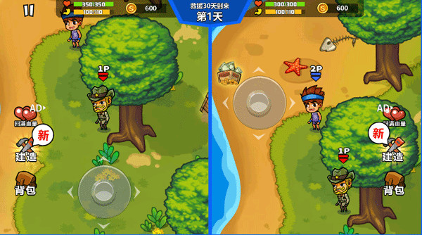 1、双人合作,在里面可以享受到双人合作的玩法,一起在这个荒岛上面求生等待救援人员。