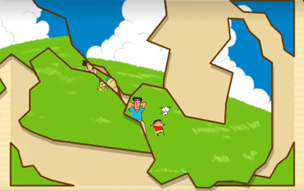 3、然后蜡笔小新就可以开始拼图了,点击拼图碎片移动到合适位置即可。