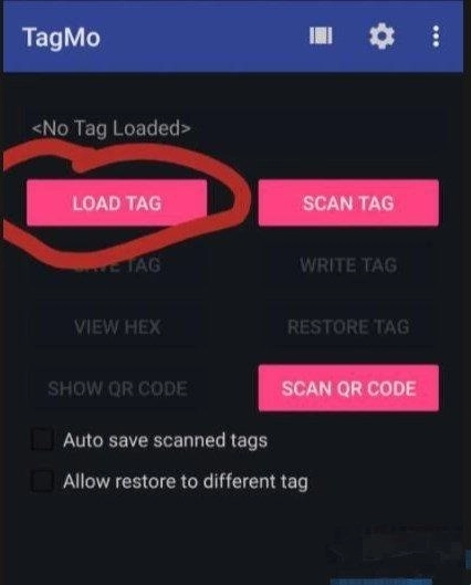 4、返回主界面,点击“LOAD TAG”按钮,选择需要刷入的amiibo文件(通常为【******.bin】格式)。