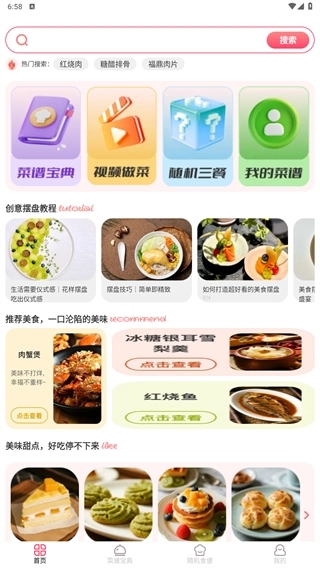 2、首页可以查看海量食谱,还能通过视频教学轻松学会各种美食,点击菜谱宝典。
