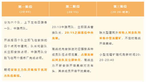 ⑤为了统一队伍调度,除队长和军师外,其他队员不开集结,开战后除汇报倩况外,不闲聊无关的事,避免干扰指挥,可以在龙曜战术面板上统一看指挥;