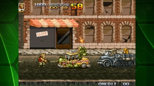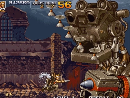 采用经典的2D像素点绘画风,snk御用画师作画,场景角色完美还原,枪械战车悉数登场