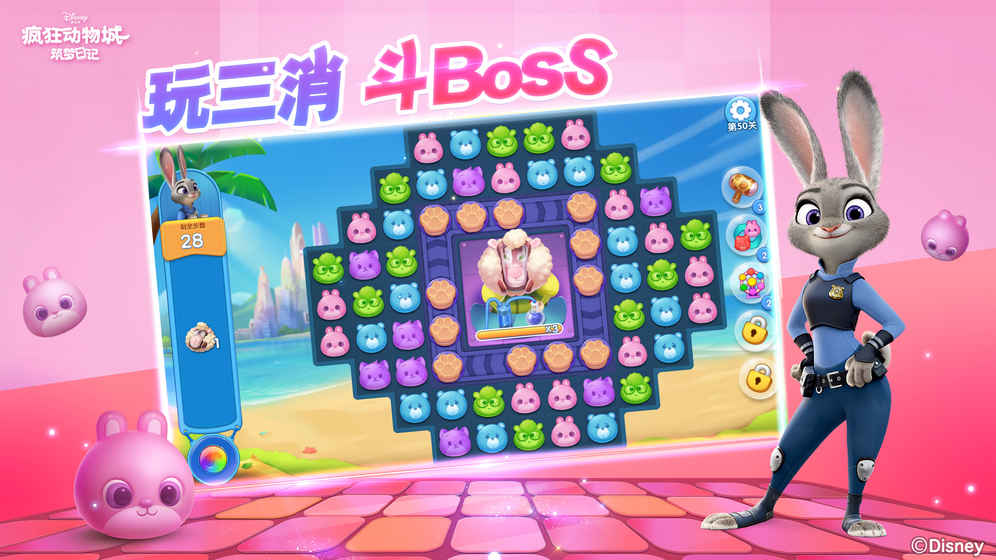 《疯狂动物城:筑梦日记》由迪士尼正版IP授权,是腾讯出品的消除类游戏。该游戏以消除这一休闲玩法为基石,融入经营养成玩法,还增添了《疯狂动物城》的扩展剧情。玩家能够借助消除通关、经营动物城主题乐园等多种玩法,在游戏里感受《疯狂动物城》的精彩世界。