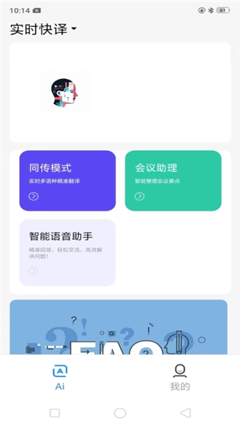 实时快译是一款简洁实用的翻译软件,其界面简洁,功能丰富。它不仅具备智能翻译功能,还提供会议实时记录以及智能语音助手等特色服务。在这款软件中,用户能够选择多种不同的翻译模式,像同传模式、语音翻译、拍照翻译等等,在线即可轻松获得便捷且准确的翻译服务。