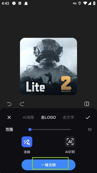 3、接下来,能看到带有【AI消除、去LOGO、去文字】等内容的涂抹消除区域,点击一键去除就行。