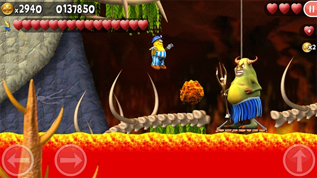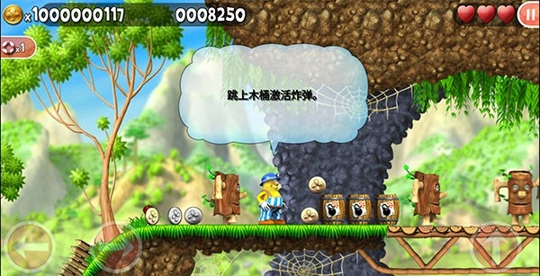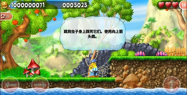 1. 左边的两个按钮分别控制前进和后退,右边的按钮控制跳跃。按两次会导致双跳。杰克有三颗心,触摸像虫子这样的怪物会消耗这些心。
