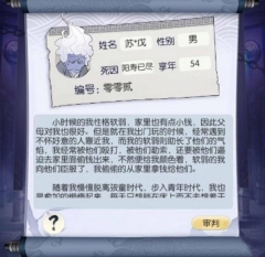 1在无极仙途中,小鬼的各项信息皆随机生成,诸如姓名、性别、死因以及阳寿等,这些因素均不会对最终的审判结果造成影响。小鬼的生平堪称判定其等级最为关键且直接的依据。生平最多由四段话构成,每一段话分别代表待判鬼在不同时期的所作所为。依据每段生平所呈现的善恶程度,即可判定待判鬼的等级。