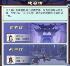 5、排行榜包含官职榜与判案榜两类。玩家依据累计获取的阴曹分来确定官职,官职总计有8种。鉴于判案所获阴曹分存在增减情况,因而存在官职下降的可能性。官职榜按照官职等级及阴曹分进行排序,且官职榜不会进行清空重置操作。