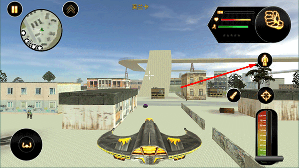 5、点击图示按钮,即可使形态转换,变身为战机,再次点击,又能转换回机器人状态。