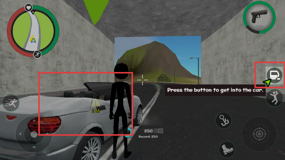 4、靠近白色汽车后,点击右侧上车按钮,进入车辆。