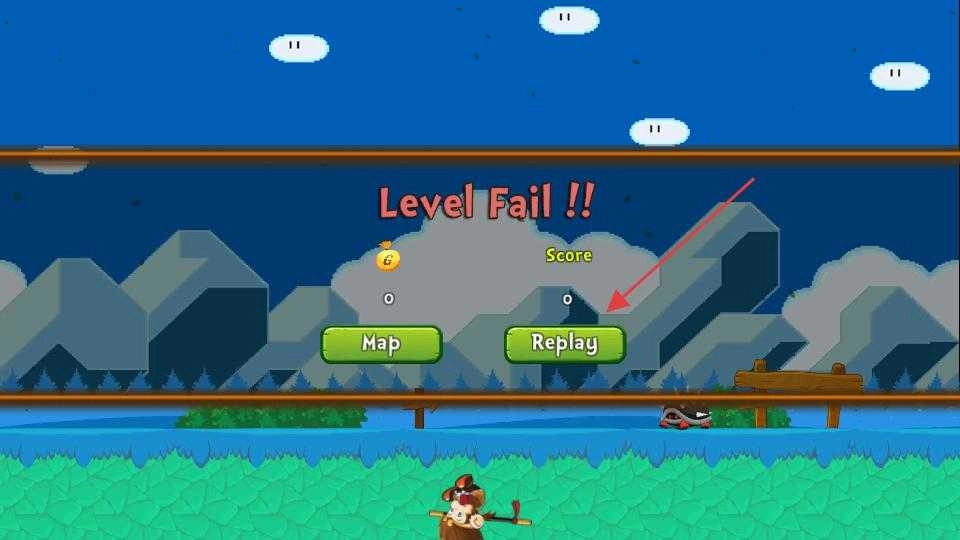 4、如果闯关失败界面会显示关卡失败提示,此时点击重新开始按钮,重新进入该关卡,再次操控猴子进行冒险,调整策略以顺利通过关卡。