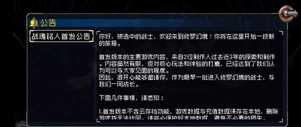 3、首发公告十分重要,还请仔细阅读首发公告避免踩坑(点击右上角按钮可关闭公告)