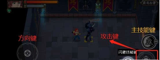 8、战斗场景中会出现文字指引,根据指引点击闪避技能键进行闪避