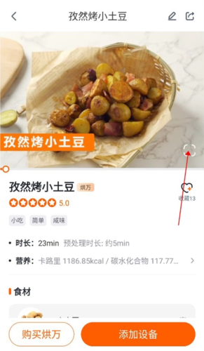 用户选择好美食菜谱后,即可查看视频教程,点击右边内的全屏图标还可以放大查看。
