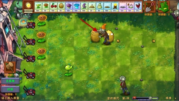 3、当有僵尸出现后,我们可以种植一些攻击型植物进行防御。