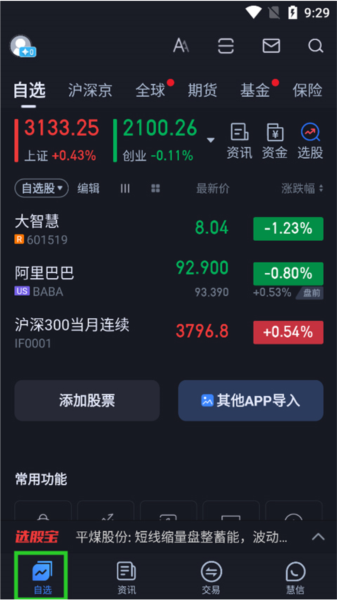5、返回到软件首页,可以看到自选股已经出现在这里的啦。