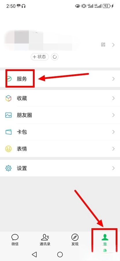 1. 打开微信,点击界面下方的【我】,接着点击【服务】