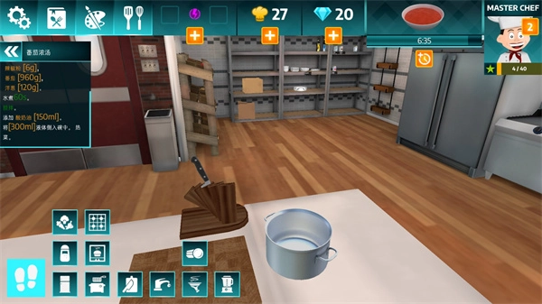 1、厨房准备,玩家可以提前购买好所需要的调料以及食物等日常原料,或者检查厨具是否有损坏需要打电话请师傅来修理等;
