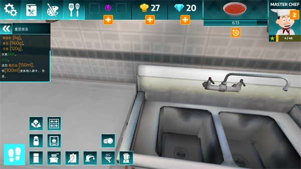 4、你必须完全依照游戏里的物理定律行事,像煮汤的温度、菜品的色泽等都要符合。并且要是客户对你做的菜不满意,就会宣泄情绪,把厨房弄得乱七八糟。