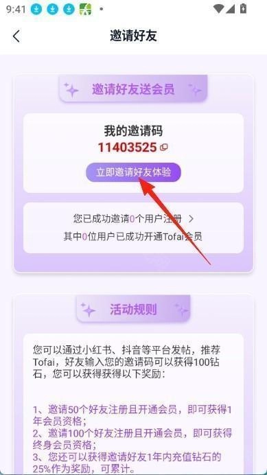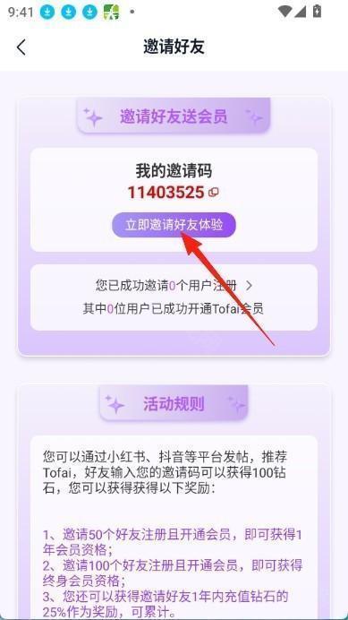 1、成功邀请50名好友注册并开通会员,可获得1年会员资格。