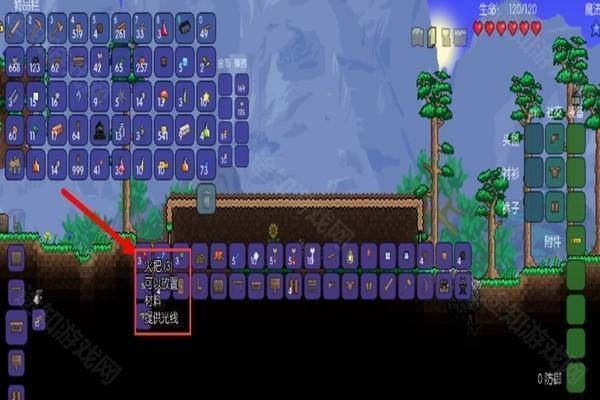 7、墙体建好后,在工作台找到【火把】,把上下2层都加上火把。