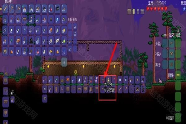 8、然后在工作台再找到【木平台】,在1层和2层之间的中间放上。